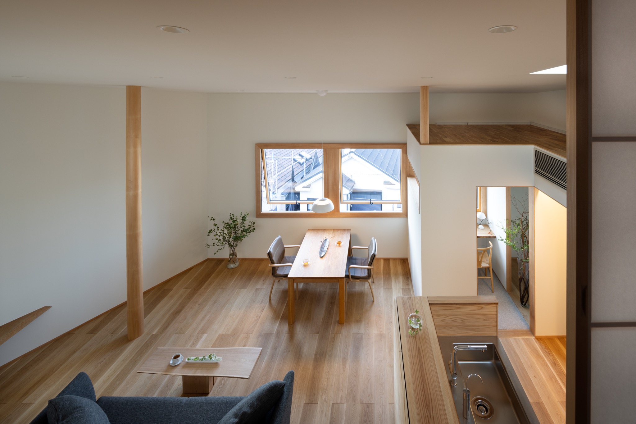リビングダイニング・北山檜丸太~書斎・キッチン・ロフト