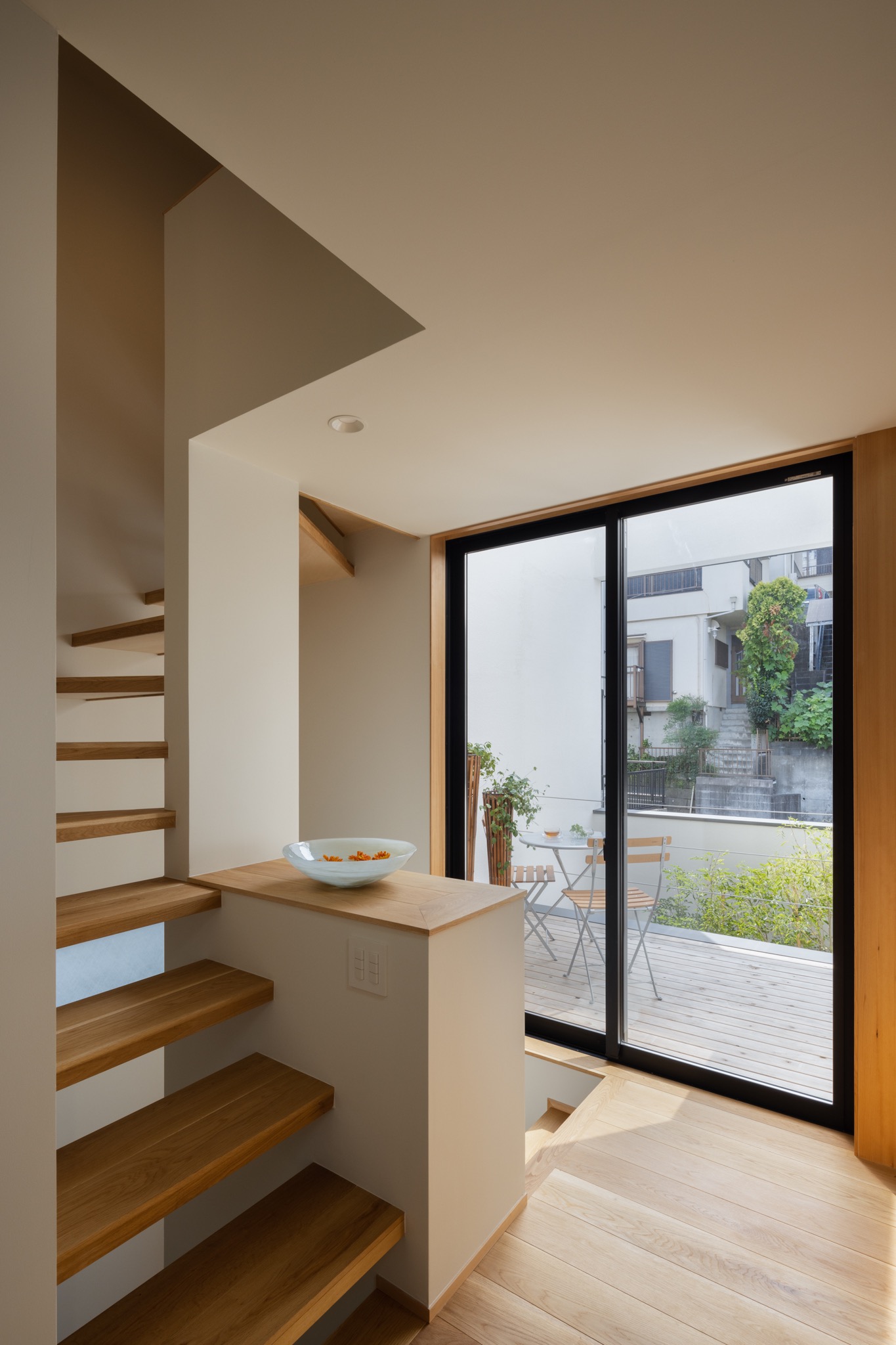 2Fホール~階段・光庭デッキ・リビングダイニング