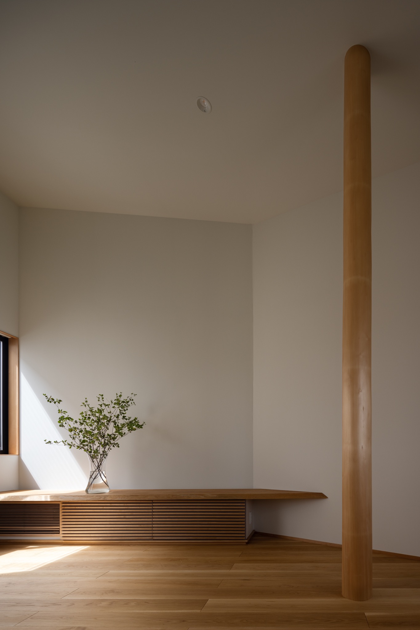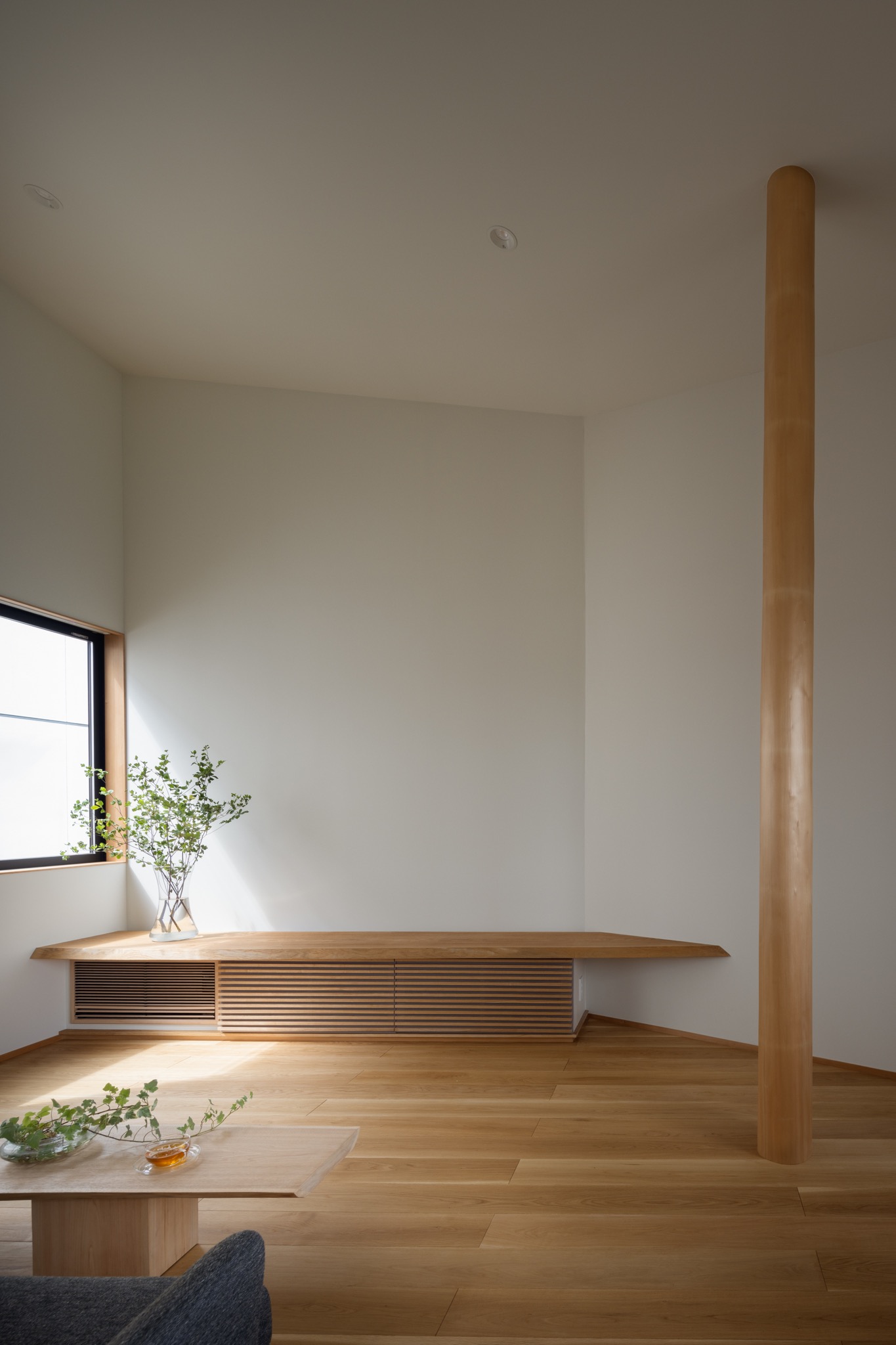 北山檜丸太とタモ無垢カウンター収納