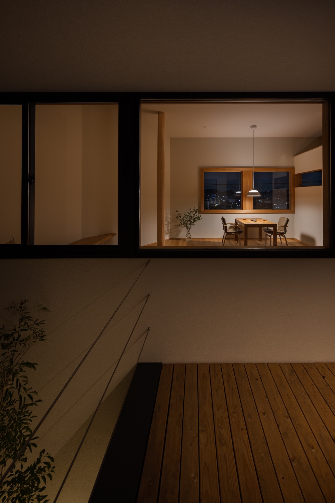 光庭デッキ~リビングダイニング夜景