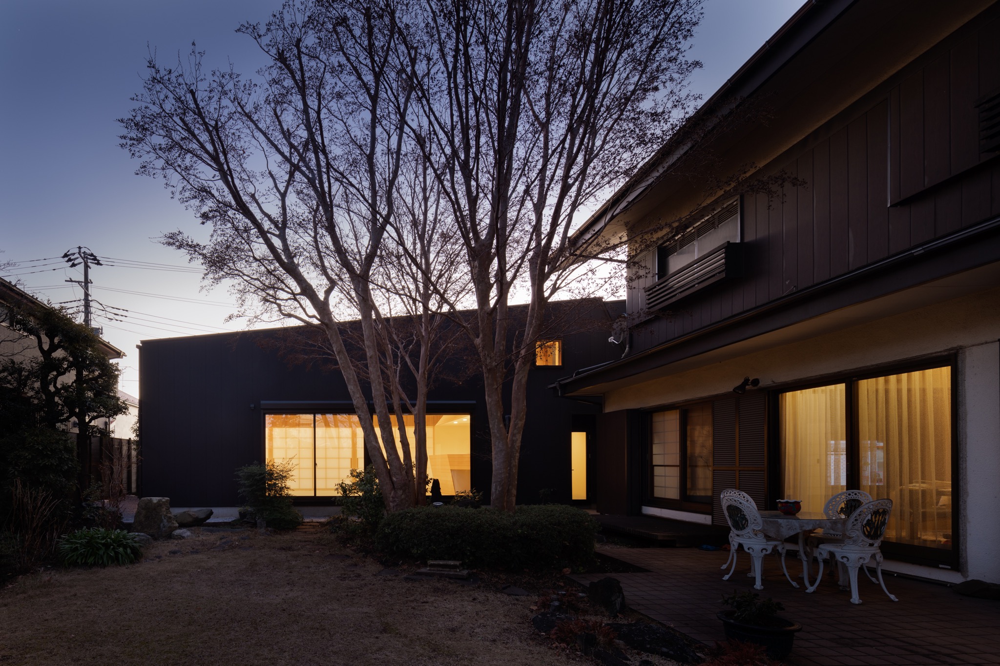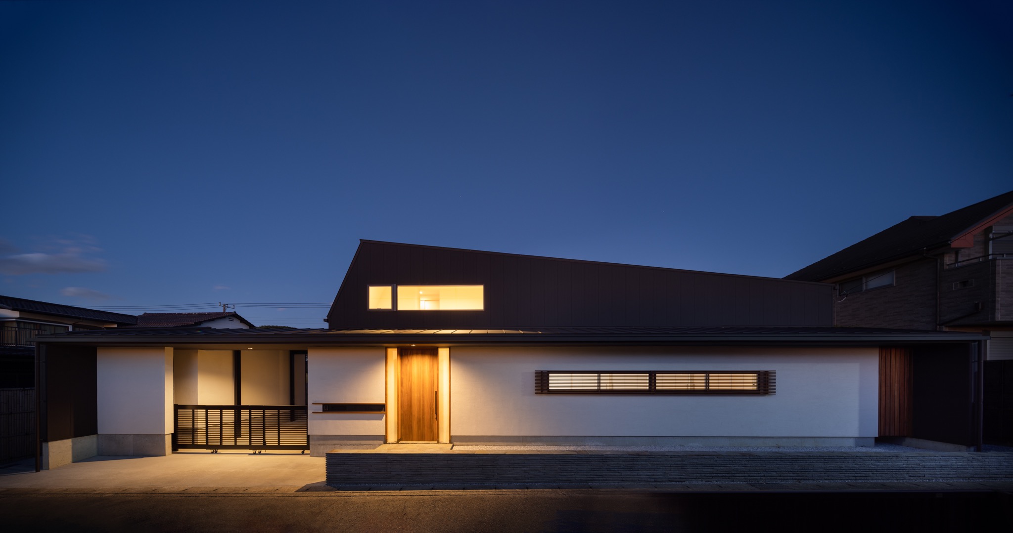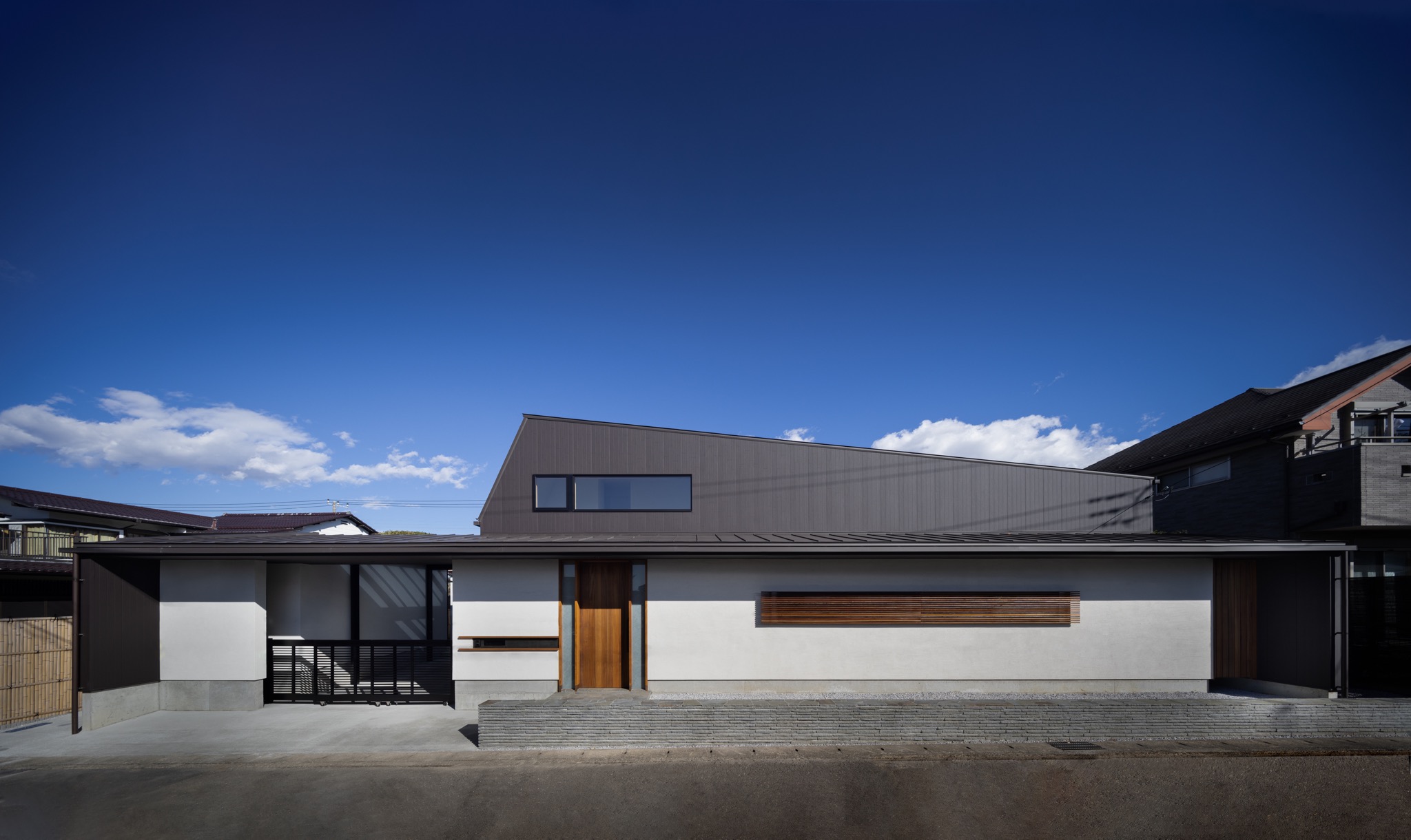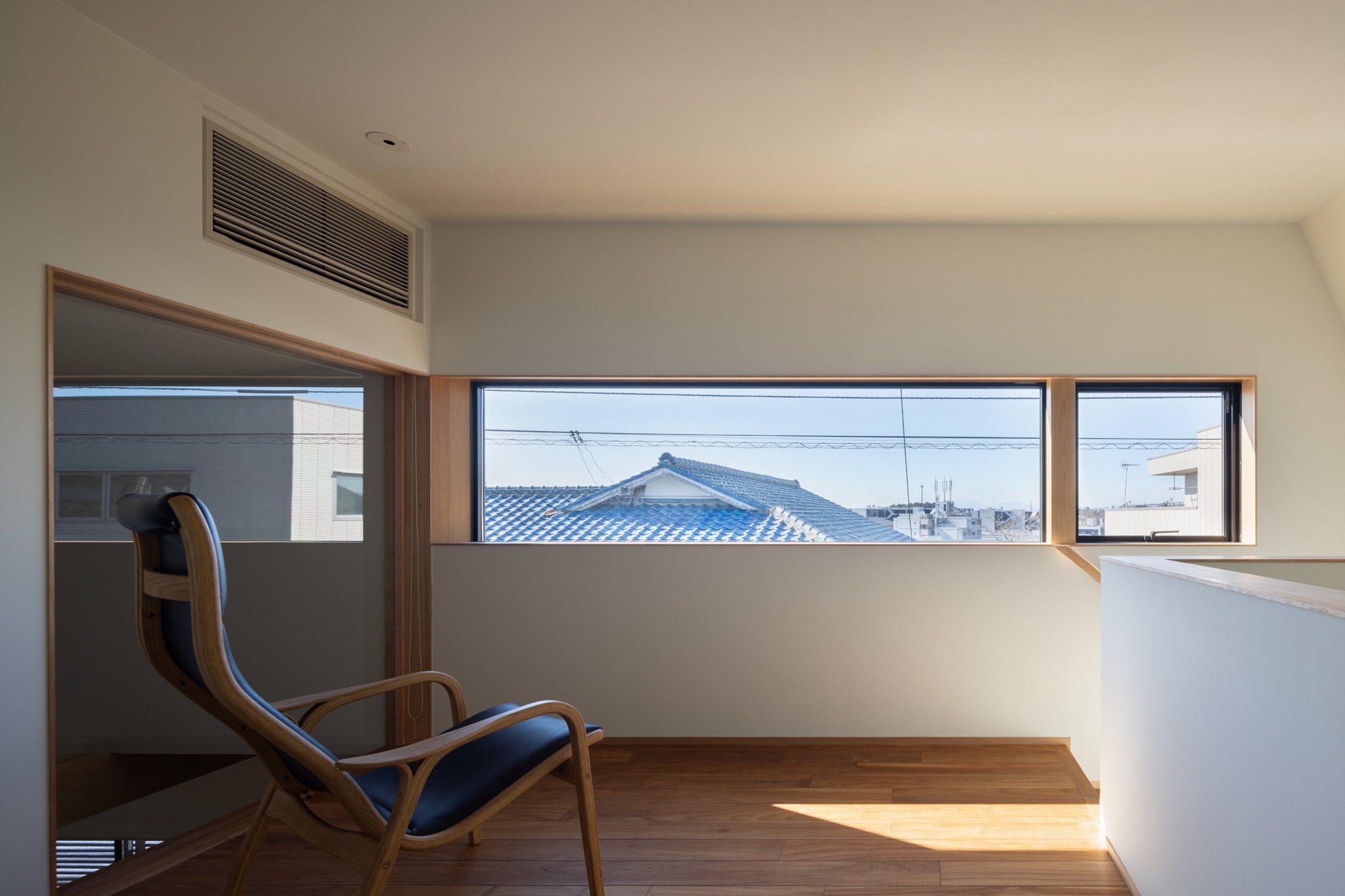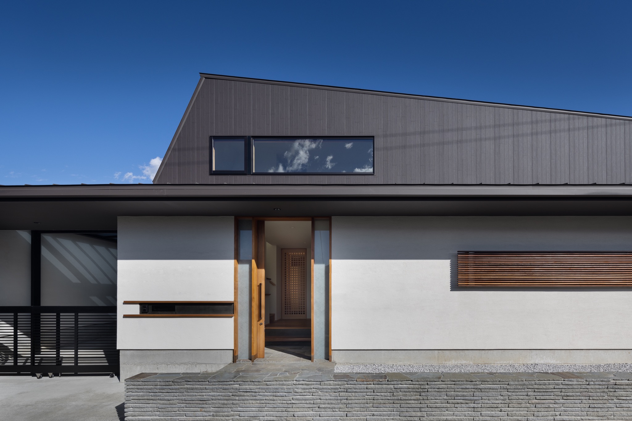 木格子のホールと檜梁のオフィス。ビルマチーク、タモ、檜、ブラックウォールナットを主材とした、作曲家の為のサロン。