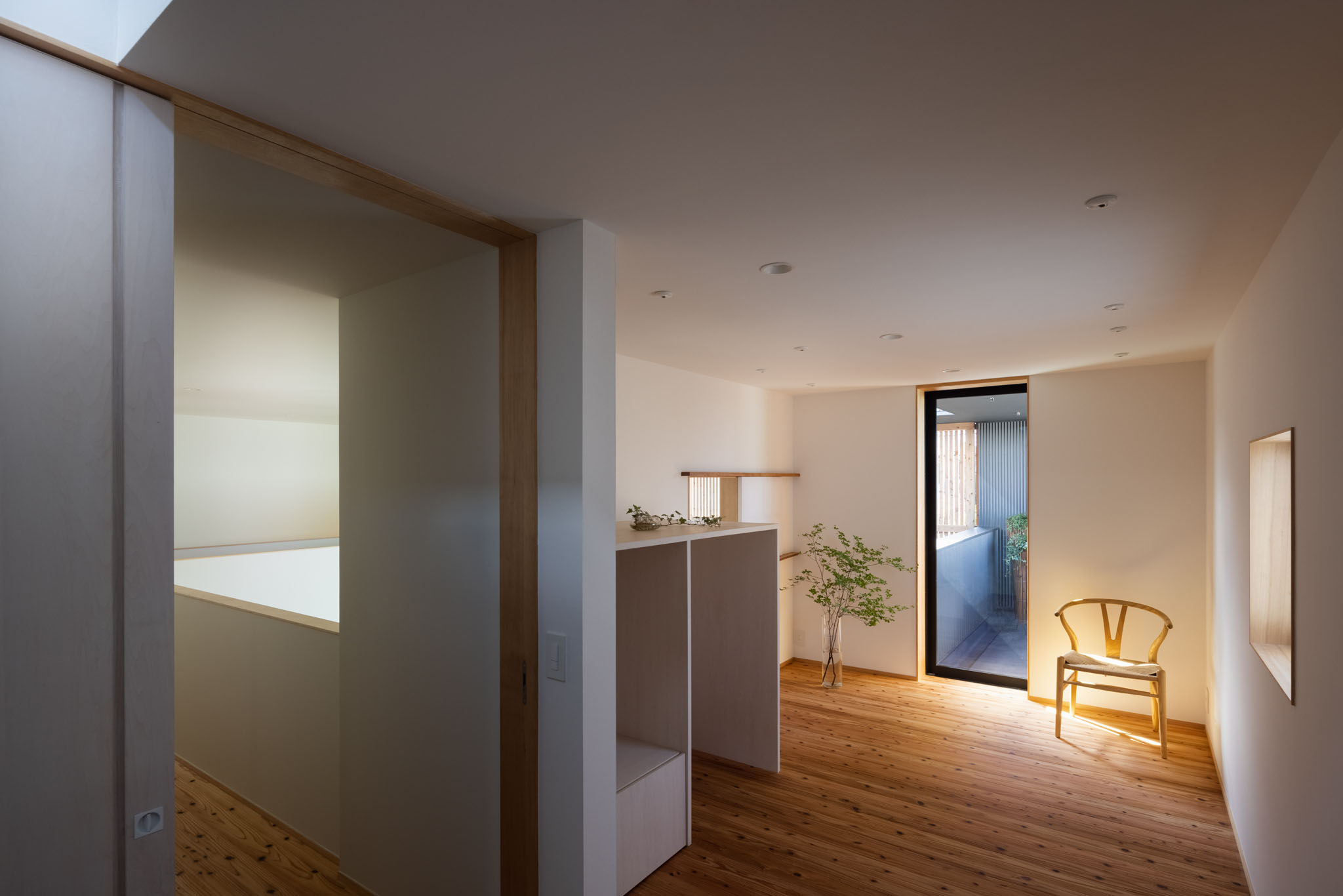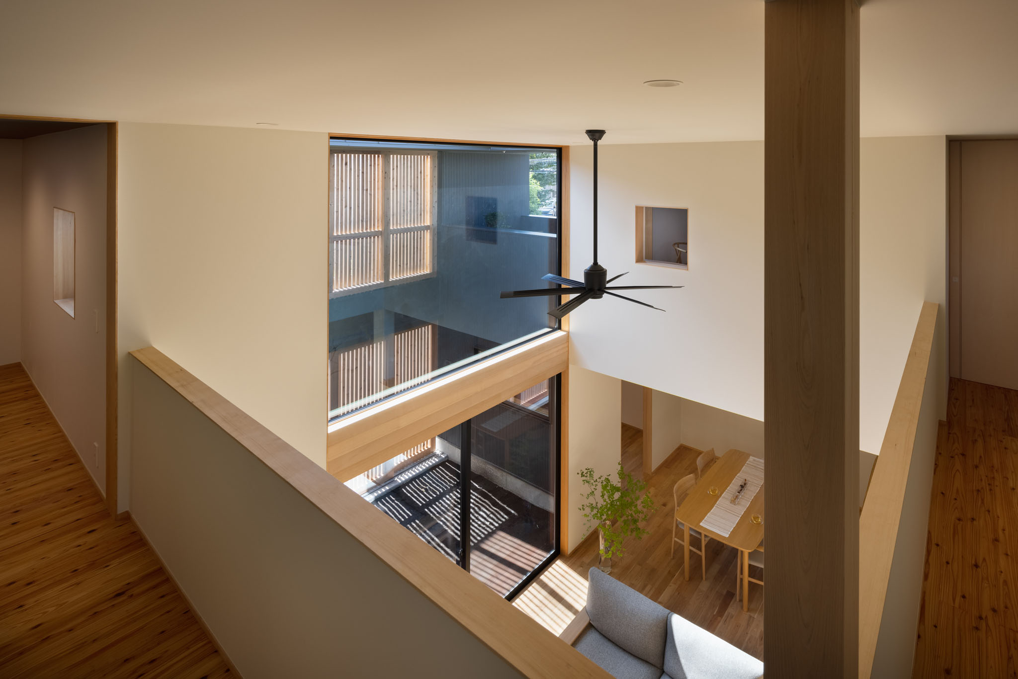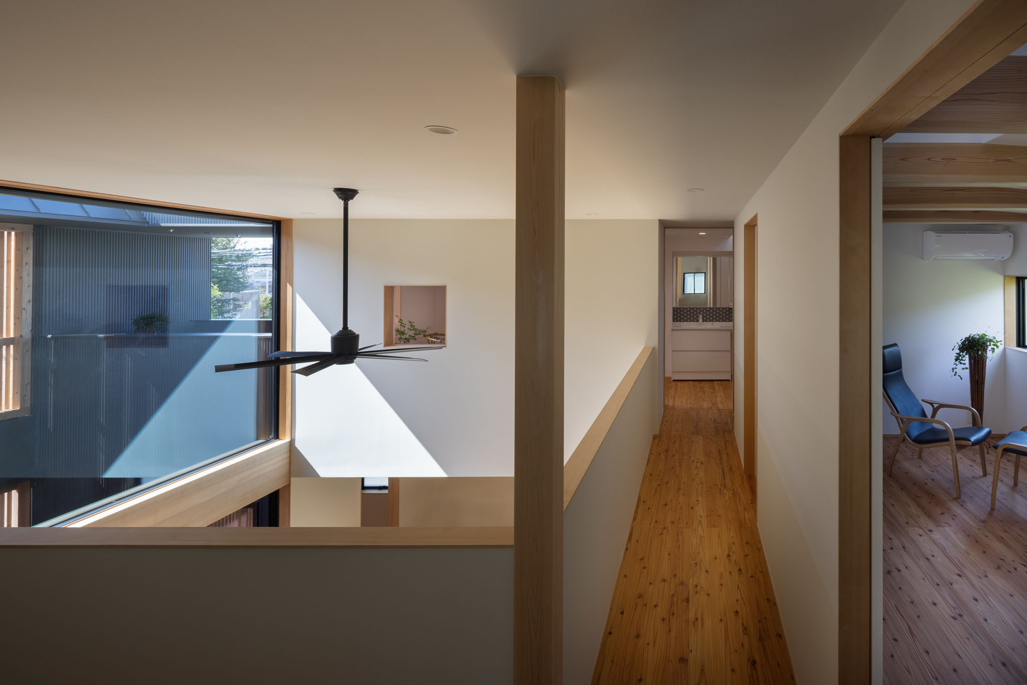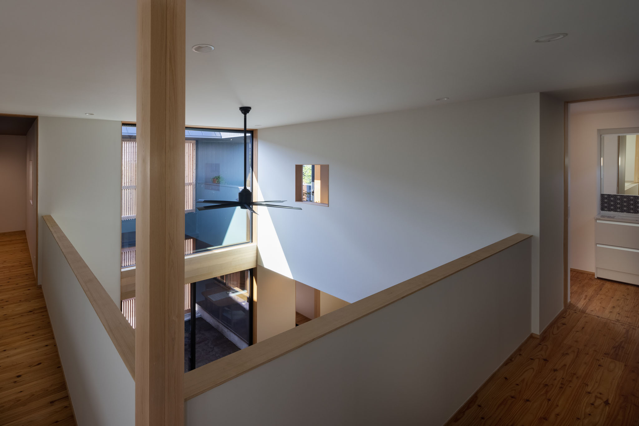 2階廊下~板間・洗面室・吹抜・洗濯室・光庭・ベルコニー