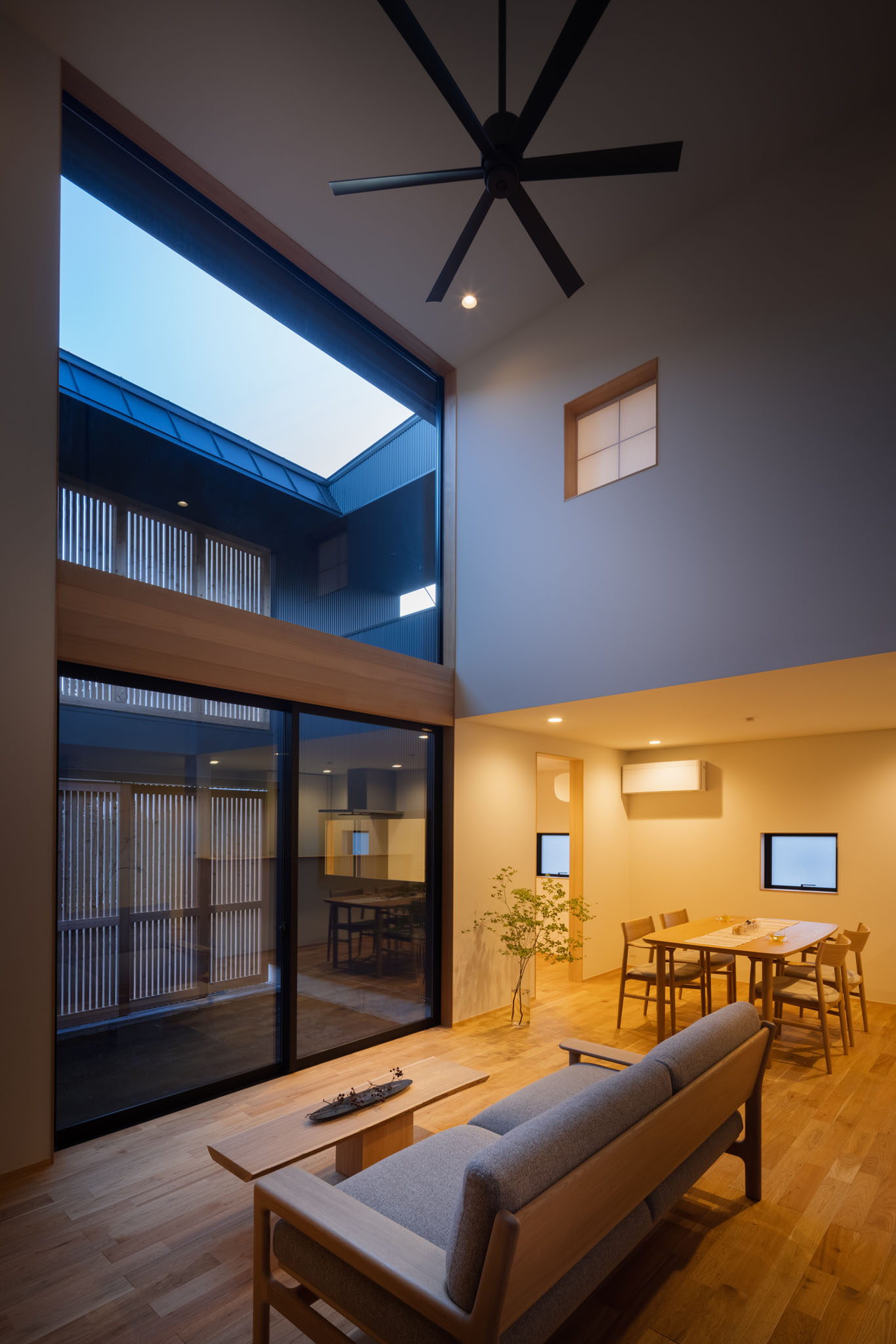 リビングダイニング~吹抜・光庭・バルコニー夕景