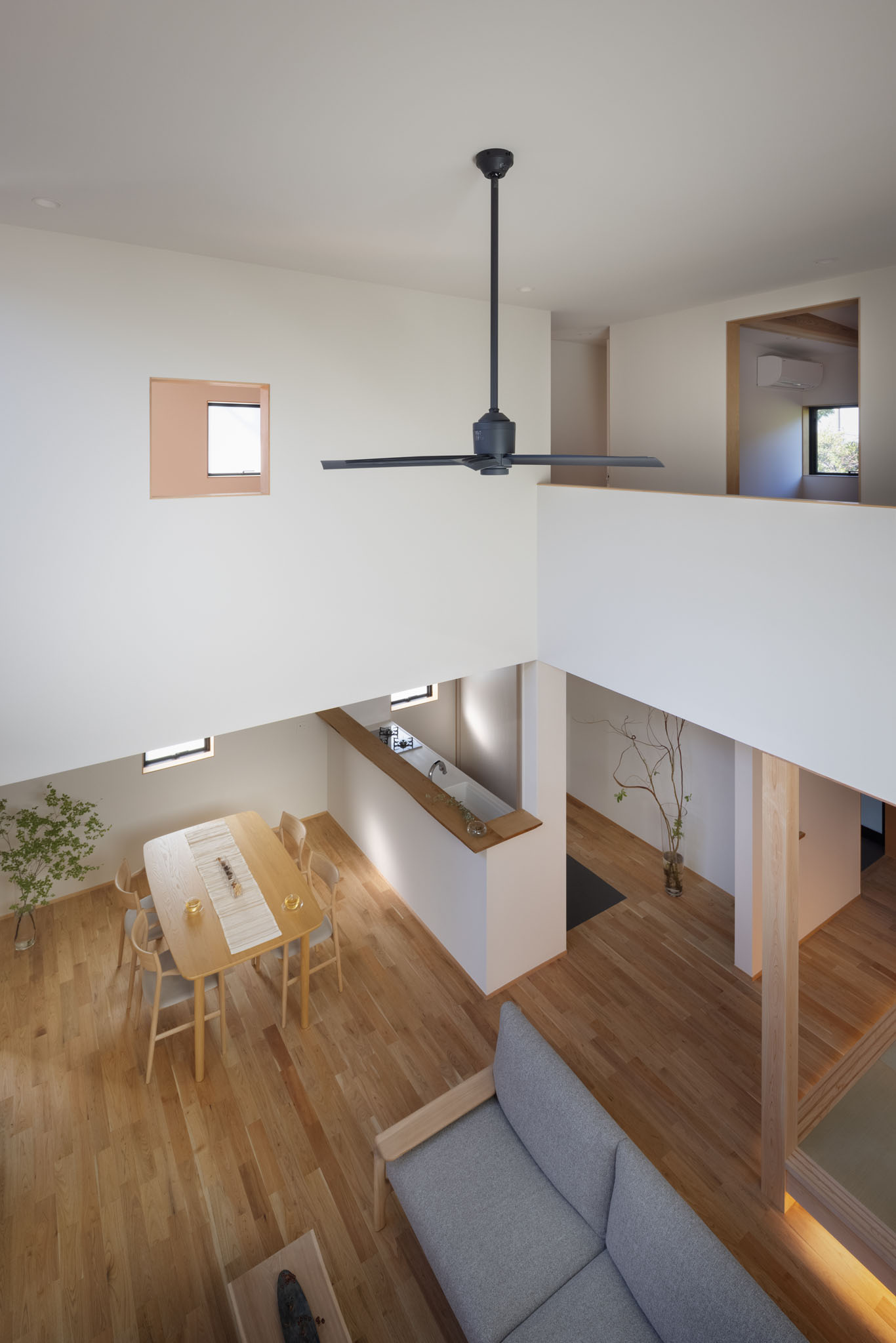2階廊下~吹抜・洗濯室、板間・リビングダイニング・キッチン